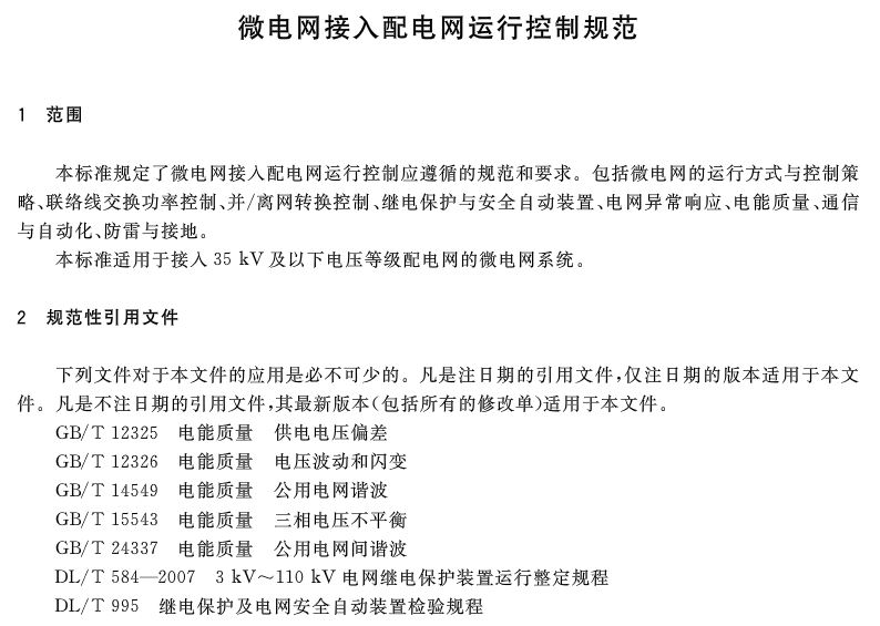 《微電網(wǎng)接入配電網(wǎng)運(yùn)行控制規(guī)范》中國標(biāo)準(zhǔn)分類號(hào)(CCS) F21 國際標(biāo)準(zhǔn)分類號(hào)(ICS) 29.240.01