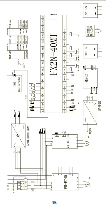 可選地,在本實施例中,所述微電網(wǎng)控制裝置100還包括逆變器、變壓器以及繼電器。所述繼電器為多個,多個所述繼電器分別與所述風(fēng)力發(fā)電單元110的輸出端、所述光伏發(fā)電單元130的輸出端以及所述市網(wǎng)系統(tǒng)的輸出端連接,所述多個繼電器的另一端分別與所述逆變器連接,所述逆變器與所述變壓器連接,所述變壓器與外部負(fù)載連接。本實施例中,所述逆變器的型號為1200W,所述變壓器的型號為HS-35-24,所述繼電器的型號為DRM270024LT。本發(fā)明實施例提供的所述微電網(wǎng)控制裝置100的電氣原理圖如圖8所示。