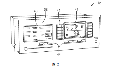 信號器顯示器40可配置成指示與微電網(wǎng)10內(nèi)的功能或操作有關(guān)的警報和/或產(chǎn)品信息。在某些實施例中,由信號器顯示器40所指示的警報可對應(yīng)于在分派調(diào)度過程或技術(shù)的階段(例如,讀取、優(yōu)化、寫入、實現(xiàn))期間可能出現(xiàn)的一個或多個類型的誤差和/或非期望事件。警報條件可通過用戶輸入來預(yù)設(shè),或可在微電網(wǎng)控制系統(tǒng)12的存儲器內(nèi)預(yù)先配置。例如,配置警報可涉及選擇警報何時響應(yīng)于特定誤差或非期望條件來提醒操作員的界限。此外,信號器顯示器40底部處的控制按鈕44可用于改變警報在前面板38上的觀看(顯示)并且在前面板38上關(guān)閉警報。在某些實施例中,控制按鈕44可用于關(guān)閉警報、循環(huán)通過主動警報、觀看關(guān)于警報的附加信息(例如,非期望誤差或事件的描述和/或位置)等等。