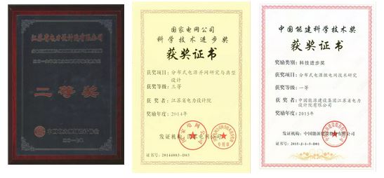 電力工程科技進步獎1項(下圖左)、國網(wǎng)公司科技進步獎1項(下圖中)、中國能建科技進步獎1項(下圖右)