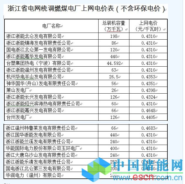 浙江浙能鎮(zhèn)海發(fā)電有限責(zé)任公司、國電浙江北侖第一發(fā)電有限公司、浙江大唐烏沙山發(fā)電有限責(zé)任公司按調(diào)整后的省統(tǒng)調(diào)燃煤發(fā)電機(jī)組標(biāo)桿上網(wǎng)電價(jià)執(zhí)行。