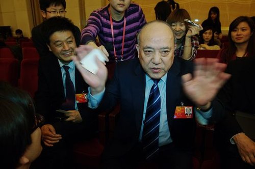 圖為今年3月,全國(guó)人大代表魯冠球在“兩會(huì)”被記者圍堵。