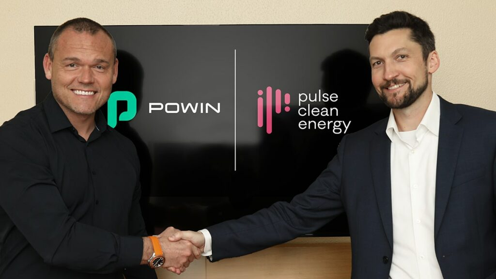Powin公司總裁Anthony Carroll(左)和Pulse Clean Energy公司首席執(zhí)行官Trevor Wills在倫敦舉辦的2024年儲(chǔ)能峰會(huì)上達(dá)成交易