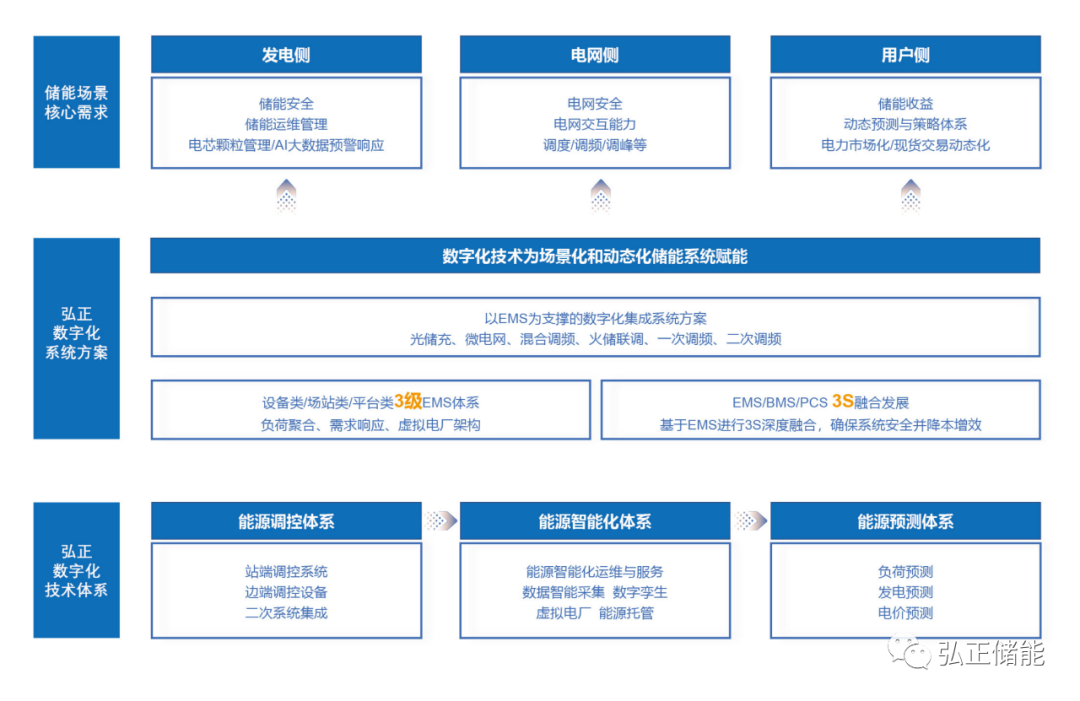 弘正3S同源技術(shù)在數(shù)智儲(chǔ)能領(lǐng)域持續(xù)發(fā)力,BMS、EMS向智能化、數(shù)字化、平臺(tái)化發(fā)展;PCS也更加強(qiáng)調(diào)自主智能、數(shù)據(jù)打通、協(xié)同運(yùn)行,不斷提升產(chǎn)品數(shù)字化、智能化程度,積極響應(yīng)用戶定制化需求,打造符合市場(chǎng)選擇核心價(jià)值的數(shù)字化儲(chǔ)能解決方案。