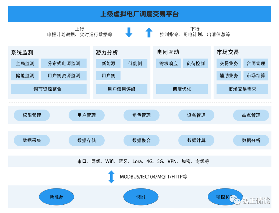 弘正儲(chǔ)能虛擬電廠通過(guò)先進(jìn)的控制、計(jì)量、通信等技術(shù)聚合分布式電源、儲(chǔ)能系統(tǒng)、可控負(fù)荷、電動(dòng)汽車等多種可調(diào)節(jié)資源,依托靈活開(kāi)放的軟件架構(gòu)實(shí)現(xiàn)多個(gè)分布式能源的優(yōu)化調(diào)度,并利用大數(shù)據(jù)的算法,持續(xù)提升分布式能源的運(yùn)行效率和虛擬電廠對(duì)電網(wǎng)的支撐能力;在能量調(diào)度和能源交易方面,弘正儲(chǔ)能可為用戶提供去中心化的技術(shù)支持,實(shí)現(xiàn)自適應(yīng)、去中心化的能源調(diào)度,促進(jìn)電力市場(chǎng)的競(jìng)爭(zhēng)和合作,推動(dòng)能源交易,實(shí)現(xiàn)能源互補(bǔ)、協(xié)同運(yùn)營(yíng)和多方共贏。