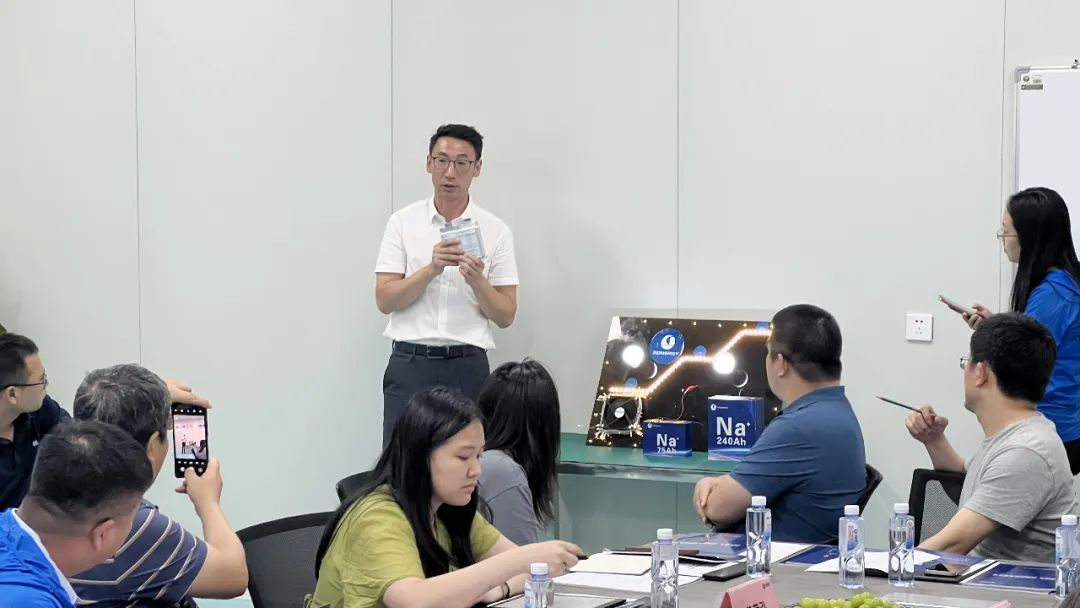 參觀結(jié)束后,雙方進(jìn)行了技術(shù)交流座談,雙方圍繞離網(wǎng)光儲項目應(yīng)用、鈉電技術(shù)和國內(nèi)外發(fā)展前景、電池回收、產(chǎn)品認(rèn)證、上下游產(chǎn)業(yè)鏈合作等進(jìn)行了熱烈討論和深入交流。劉楊副院長介紹了公司鈉電研發(fā)進(jìn)展,并現(xiàn)場演示了鈉電池產(chǎn)品的實物應(yīng)用。