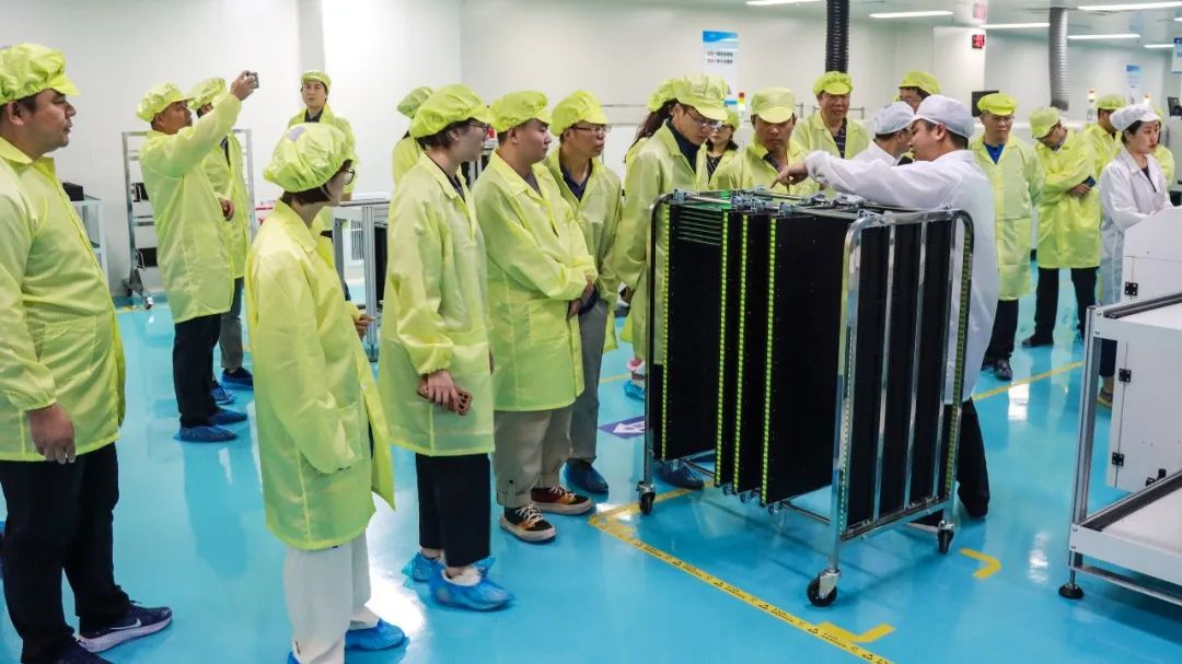 調(diào)研團(tuán)參觀了公司產(chǎn)品展廳、遠(yuǎn)程運維平臺、逆變器生產(chǎn)線、儲能生產(chǎn)線等,詳細(xì)了解公司的產(chǎn)能規(guī)模、設(shè)備運用、綠色生產(chǎn)、技術(shù)研發(fā)等,對公司的生產(chǎn)管理及科研創(chuàng)新給予了高度評價。李二勇總現(xiàn)場介紹了公司發(fā)展情況、主要產(chǎn)品及項目。
