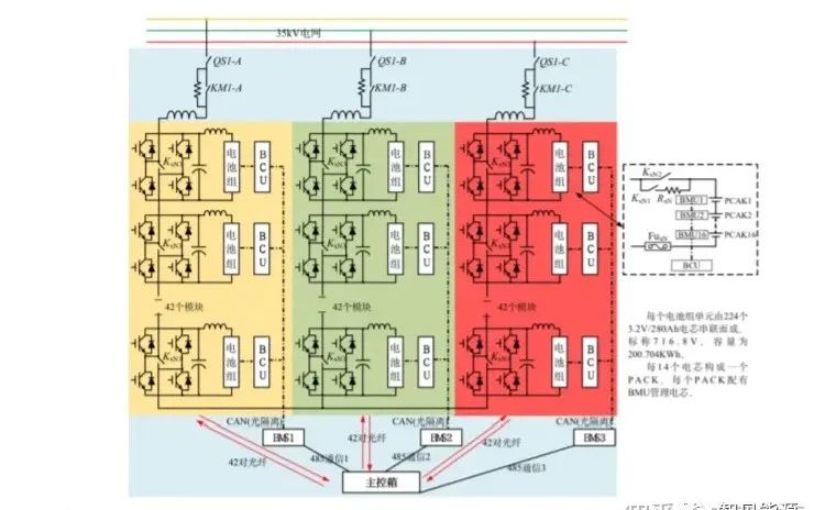 (2)分布式:低壓小功率分布式升壓并網(wǎng)儲(chǔ)能系統(tǒng),每一簇電池都與一個(gè)PCS單元連接,PCS采用小功率、分布式布置。