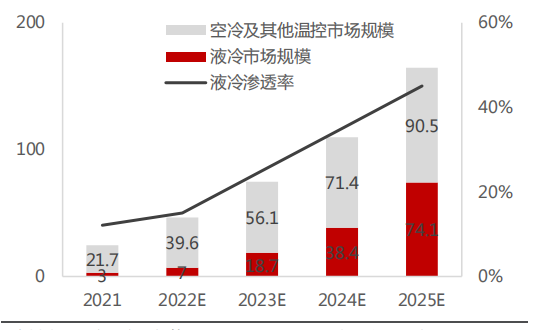 中國(guó)儲(chǔ)能溫控及液冷市場(chǎng)規(guī)模預(yù)測(cè)(億元)