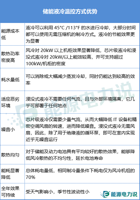 其中液冷技術(shù)通過(guò)液體對(duì)流直接散熱的方式,能夠?qū)崿F(xiàn)對(duì)電池的精確溫控,確保降溫均勻性。相比之下,風(fēng)冷技術(shù)成本較低,但是散熱效率并不高,而且無(wú)法實(shí)現(xiàn)對(duì)電池的精確溫控。因此,在低功率場(chǎng)景下,風(fēng)冷仍然是主流,而在中高功率場(chǎng)景下,液冷技術(shù)占據(jù)了主導(dǎo)地位。液冷系統(tǒng)有大比熱容和快速冷卻等優(yōu)點(diǎn),能夠更加有效地控制電池的溫度,從而保證儲(chǔ)能電池的穩(wěn)定運(yùn)行。