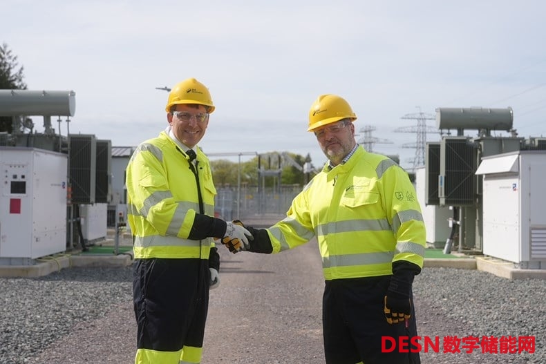 索爾茲伯里的國會(huì)議員John Glen (左)出席SSE Renewables公司部署的50MW/100MWh電池儲(chǔ)能系統(tǒng)開通儀式