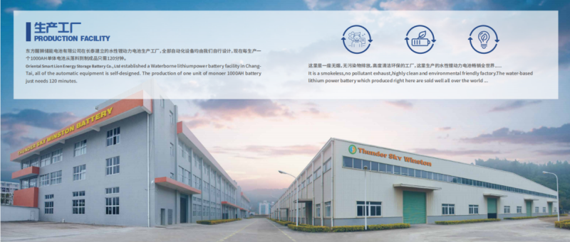 坐落在福建省漳州市長(zhǎng)泰經(jīng)濟(jì)開發(fā)區(qū)內(nèi)。建設(shè)生產(chǎn)儲(chǔ)能型鋰釔電池單體10000安時(shí)到1000安時(shí)、700到100安時(shí)等型號(hào)規(guī)格的“雷天”(Thunder sky)、“溫斯頓”(Winston)品牌的水溶性鋰動(dòng)力電池,自1999年以來(lái)先后得到國(guó)際級(jí)“AXA”(安盛)保險(xiǎn)公司長(zhǎng)年承擔(dān)產(chǎn)品意外保險(xiǎn)。水性鋰動(dòng)力電池暢銷歐美70多個(gè)國(guó)家、非亞各國(guó)深受用戶信賴,產(chǎn)品供不應(yīng)求。