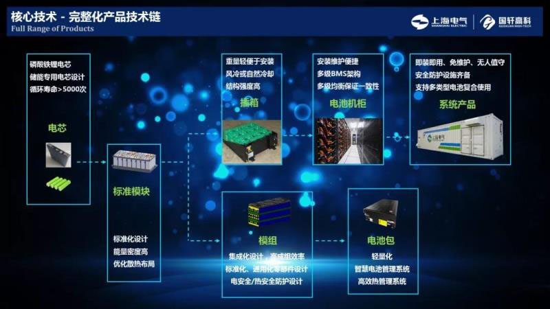 在儲(chǔ)能產(chǎn)業(yè)領(lǐng)域,上海電氣國軒重點(diǎn)布局儲(chǔ)能電芯和儲(chǔ)能系統(tǒng)集成兩大核心技術(shù)板塊,持續(xù)投入研發(fā),完成從電芯到儲(chǔ)能系統(tǒng)的完整化產(chǎn)品技術(shù)鏈,目前已在儲(chǔ)能各個(gè)環(huán)節(jié)實(shí)現(xiàn)成功案例。