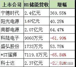 具體上市公司H1儲能營收情況如下: