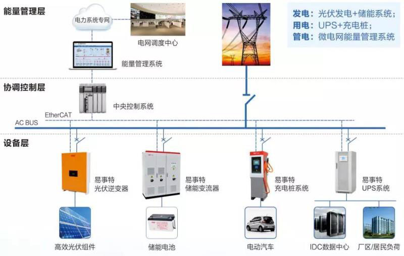 易事特作為智慧能源領(lǐng)域?qū)嵙?yīng)商,堅持研發(fā)創(chuàng)新、引領(lǐng)行業(yè)發(fā)展,已研制開發(fā)出了全系列儲能變流器產(chǎn)品、雙向直流變換器產(chǎn)品、儲能電站能量管理系統(tǒng)等核心關(guān)鍵產(chǎn)品,以及儲能電站及微電網(wǎng)系統(tǒng)解決方案。在源、網(wǎng)、荷、儲等多個場景都設(shè)計出完善的解決方案并在市場推廣。