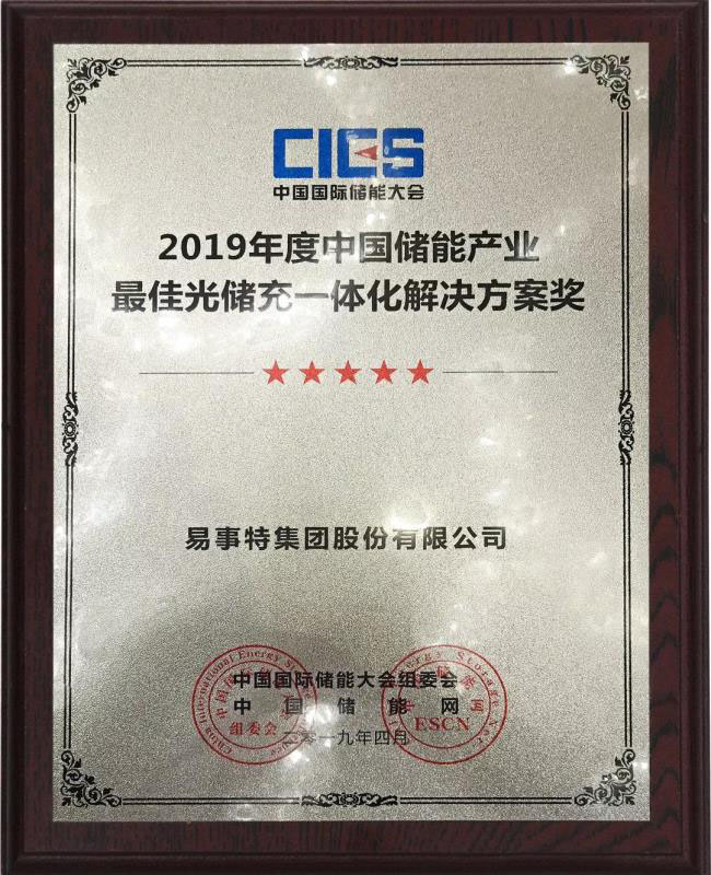 4月24日,由中國化學(xué)與物理電源行業(yè)協(xié)會主辦的第九屆中國國際儲能大會在浙江省杭州成功召開。同時,頒發(fā)2019年度中國儲能產(chǎn)業(yè)最具影響力系列獎項,易事特集團實力榮獲“2019年度中國儲能產(chǎn)業(yè)最佳光儲充一體化解決方案獎”。