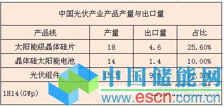 中國大陸光伏組件制造商2014上半年出口量9.5GWp,總價(jià)值66億美元,其中日本、美國及歐洲出貨量分別為2GWp(23.7億美元)、2GWp(13.5億美元)及1.9GWp(13.4億美元)。