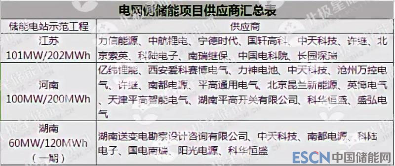 從目前已經(jīng)完成招標(biāo)的電網(wǎng)側(cè)儲(chǔ)能項(xiàng)目來看,供應(yīng)商大多集中在少數(shù)幾家企業(yè)手里,具體如下圖所示: