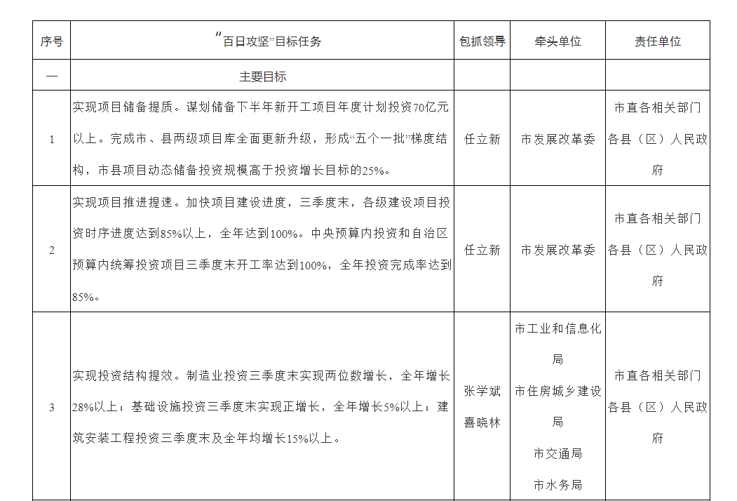 附件:固原市貫徹落實自治區(qū)《擴大有效投資百日攻堅工作方案》目標責任清單
