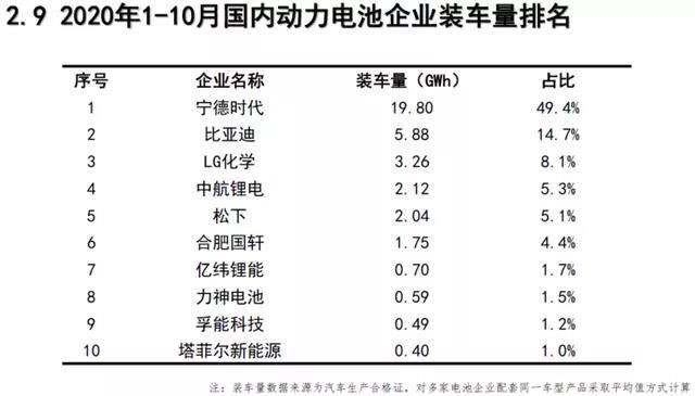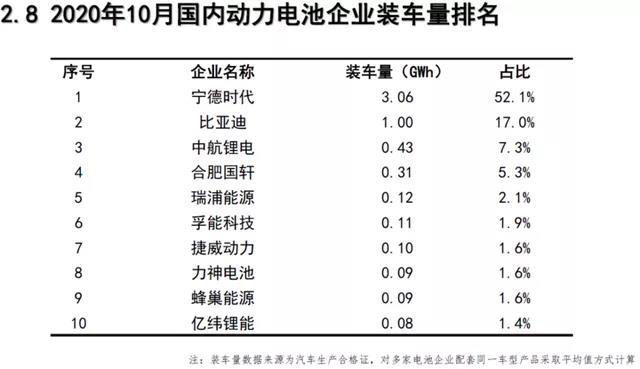 企業(yè)方面,2020年10月,我國新能源汽車市場共計(jì)38家動力電池企業(yè)實(shí)現(xiàn)裝車配套。排名前3家、前5家、前10家動力電池企業(yè)動力電池裝車量分別為4.5GWh、4.9GWh和5.4GWh,占總裝車量比分別為76.5%、83.9%和92%。