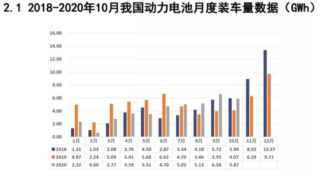 從單臺車平均裝車電量來看,2020年10月,我國新能源汽車按車型劃分的平均裝車電量44.1kWh,環(huán)比下降6.9%。其中純電動乘用車和純電動客車單車平均帶電量分別為42.3kWh/輛和201.6kWh/輛,環(huán)比分別下降5.8%和上升0.5%。