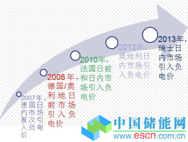 2007年,德國日內(nèi)市場(chǎng)首次引入負(fù)電價(jià);2008年,德國/奧利地日前市場(chǎng)引入負(fù)電價(jià);2010年,法國日前和日內(nèi)市場(chǎng)引入負(fù)電價(jià);2012年、2013年奧地利和瑞士日內(nèi)市場(chǎng)先后引入負(fù)電價(jià)。據(jù)統(tǒng)計(jì),2012年德國出現(xiàn)負(fù)電價(jià)時(shí)間總共56個(gè)小時(shí),2013年48個(gè)小時(shí)。法國、比利時(shí)等其他市場(chǎng)2012年負(fù)電價(jià)小時(shí)數(shù)要低于德國,但在2013年顯著增加。