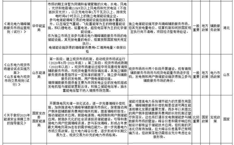 本月,國家層面先后印發(fā)《關(guān)于做好2020年能源安全保障工作的指導(dǎo)意見》和《2020年能源工作指導(dǎo)意見》,作為指導(dǎo)2020年能源工作方向的政策文件,再次提出輔助服務(wù)市場長效機制建設(shè)路線,即探索推動用戶側(cè)承擔(dān)輔助服務(wù)費用的相關(guān)機制,這也將是破解眾多電力發(fā)展難題的關(guān)鍵,而不同應(yīng)用領(lǐng)域和投資主體擁有的儲能系統(tǒng)必將得益于電力市場長效機制的建立,身份定位和補償支付也將趨于合理化。同時,國家層面已研究落實峰谷價差執(zhí)行政策,但在現(xiàn)有大環(huán)境下,實質(zhì)性政策落地仍需時日。在市場化改革深入推進過程中,已開展多年的需求響應(yīng)工作還有必要得到深化設(shè)計,其調(diào)用規(guī)則和基準(zhǔn)線設(shè)計等不能再停留在初級階段,要更加適應(yīng)現(xiàn)有電力系統(tǒng)的發(fā)展,同時其背后的長效機制,即過渡階段的付費問題和長遠階段的靈活價格機制同樣需要突破。除資金來源差異外,現(xiàn)有需求響應(yīng)和用戶調(diào)峰輔助服務(wù)存在重疊,但規(guī)則設(shè)計卻不在同一維度。2020年,已研究多年的儲能示范項目征集工作有望啟動,至此產(chǎn)業(yè)內(nèi)主體已不關(guān)注示范項目的資金補貼問題,更希望能夠自上而下引領(lǐng)行業(yè)發(fā)展進步,落實配套政策并支持儲能的商業(yè)化應(yīng)用。