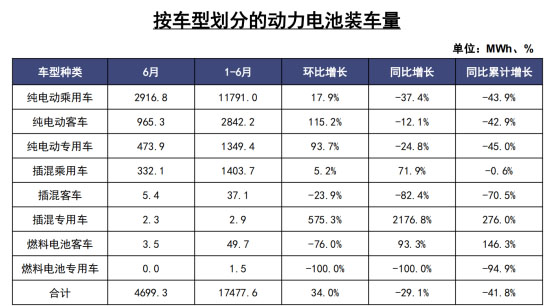 此外,2020年上半年,國內純電動乘用車動力電池裝車量為11791MWh,同比累計下降43.9%;純電動客車動力電池裝車量為2842.2MWh,同比累計下降42.9%;純電動專用車動力電池裝車量為1349.4MWh,同比累計下降45%。