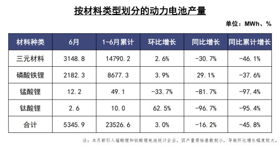 2020年上半年,我國動力電池產量累計為23.5GWh,同比累計下降45.8%。其中,三元電池產量累計14.8GWh,占總產量62.9%,同比累計下降46.1%;磷酸鐵鋰電池產量累計8.7GWh,占總產量36.9%,同比累計下降37.6%。