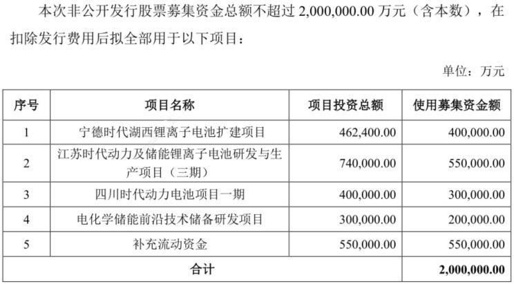 根據(jù)寧德時(shí)代《非公開(kāi)發(fā)行股票預(yù)案》公告顯示,擬擴(kuò)建的“寧德時(shí)代湖西鋰離子電池項(xiàng)目”將新增鋰離子電池年產(chǎn)能約16GWh,項(xiàng)目投資46.24億元。“江蘇時(shí)代動(dòng)力及儲(chǔ)能鋰離子電池研發(fā)與生產(chǎn)項(xiàng)目(三期)”則將新增鋰離子電池年產(chǎn)能約24GWh,項(xiàng)目投資74億元。“四川時(shí)代動(dòng)力電池項(xiàng)目一期”項(xiàng)目投資40億元,建設(shè)內(nèi)容為新增鋰離子電池年產(chǎn)能約12GWh。