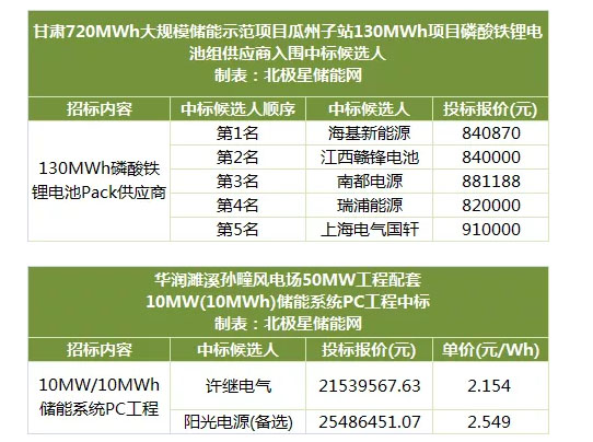 甘肅720MWh大規(guī)模儲(chǔ)能示范項(xiàng)目瓜州子站130MWh項(xiàng)目磷酸鐵鋰電池組中標(biāo)候選人如下: