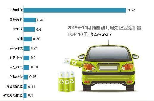 據(jù)了解,今年前11個(gè)月我國動(dòng)力電池企業(yè)裝機(jī)量前十名為寧德時(shí)代、比亞迪、國軒高科、力神電池、中航鋰電、時(shí)代上汽、億緯鋰能、孚能科技、鵬輝能源、卡耐新能源。