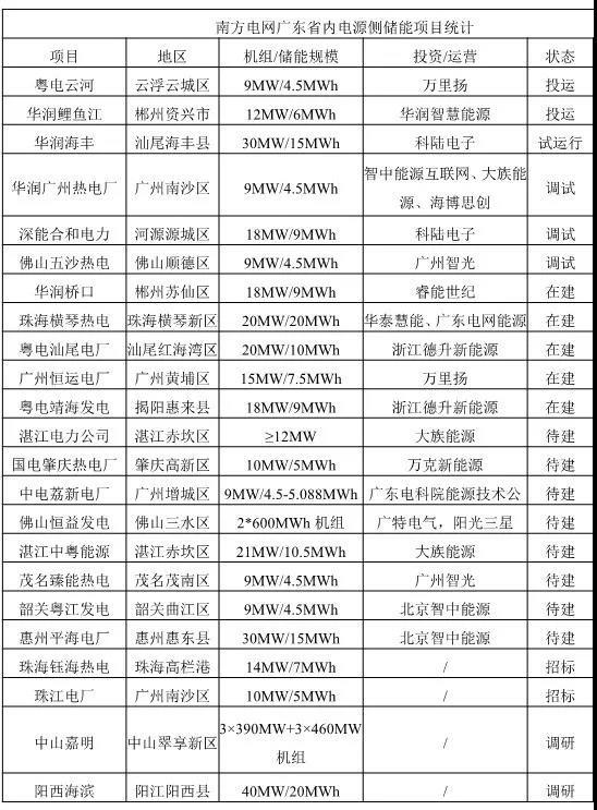 從南方電網儲能項目招投標及實施的情況來看,南方電網大型儲能的投資運作方主要為南方電網調頻調峰公司(以下簡稱“雙調公司”),南方電網綜合能源公司以及廣東電網能源投資公司。另外,廣州供電局下屬的穗能通、深圳供電局下屬的深圳電網智慧能源技術公司、南方電網和深圳供電局合資建立的南方和順電動汽車服務有限公司、東莞供電局也是南方電網里最為活躍的儲能投資建設力量之一。