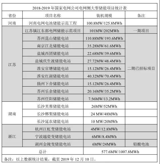 河南、湖南兩地以省綜合能源公司為主;江蘇項目有省綜合能源公司、山東電工、平高集團、國網節(jié)能公司參與儲能電站投資建設,國網浙江省電力公司下屬三產公司浙江華云集團參與浙江儲能項目一期投資建設。目前四省電網側儲能項目投資建設總裝機量已達577.6MW/1007.8MWh,其中大部分項目的啟動、調研、勘察、設計、招標等工作于2018年完成,2019年大型電網側儲能項目啟動消息寥寥。