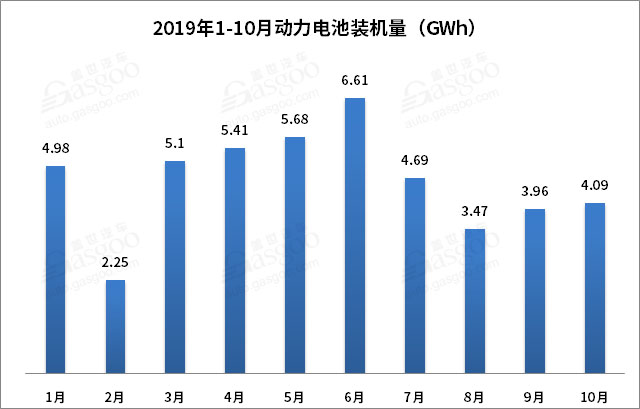 2019年10月,我國動力電池裝機量約為4.087GWh,同比下降31.03%,環(huán)比則上漲了3.3%,這是今年動力電池裝機量連續(xù)第三個月出現(xiàn)同比負增長。目前來看,10月動力電池市場雖呈現(xiàn)復(fù)蘇狀態(tài),但仍然低于去年同期水平。
