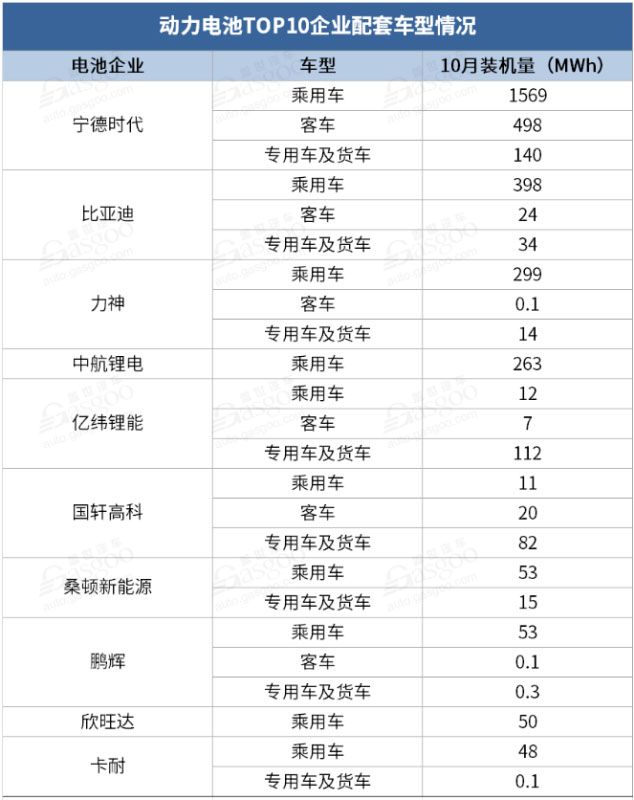 以下是動力電池TOP 10企業(yè)配套車型情況: