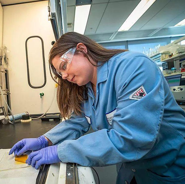 下圖所示:伯克利實驗室分子鑄造廠的研究生 Miranda Baran 在準備 AquaPIM 樣本。
