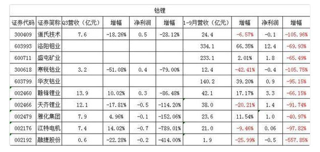 寒銳鈷業(yè)實現(xiàn)營收12.4億元,同比下滑42.41%,凈利潤-0.4億元,同比下滑105.75%;華友鈷業(yè)實現(xiàn)營收140.2億元,同比增長39.2%,凈利潤0.9億元,同比下滑95.15%。
