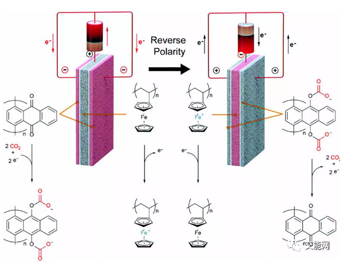 成本和儲能密度方面,作者沒有過多提及。不過可以猜的是,這項(xiàng)技術(shù)的經(jīng)濟(jì)性會好于原有的技術(shù)。一方面,電極沒有用到稀有金屬,所使用的蒽醌和二茂鐵也都實(shí)現(xiàn)了人工合成,成本不會太高。另一方面,這項(xiàng)技術(shù)既可以用于碳交易,用于電力負(fù)荷的削峰填谷,反應(yīng)過程不需要加熱或加壓,也節(jié)省了大量能源開支,捕獲的二氧化碳還可用于生產(chǎn)尿素等工業(yè)產(chǎn)品。不過,其儲能密度應(yīng)該不大。一方面,部分空間需要留作氣道,增加了裝置的體積,另一方面,真正發(fā)生反應(yīng)的只有表面的一層聚蒽醌,能儲存的電量有限。由于捕獲二氧化碳終究需要能量,其單次循環(huán)效率不高。不過,這項(xiàng)技術(shù)最初就是作為碳捕獲技術(shù)而研究,其儲能的特性可以作為錦上添花。