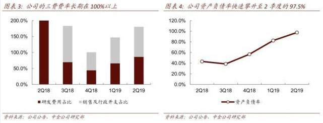 2019年第二季度,蔚來(lái)因汽車(chē)自燃事件召回了4803輛ES8,損失約3.39億元,導(dǎo)致報(bào)告期內(nèi)虧損同比增加83%。據(jù)中金公司數(shù)據(jù),隨著經(jīng)營(yíng)虧損與凈虧損逐季度攀升,蔚來(lái)資產(chǎn)負(fù)債率在二季度已達(dá)到97.5%,前期累積虧損已成為蔚來(lái)沉重的包袱。
