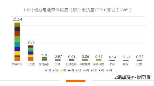 比亞迪方面隨著比亞迪車型產(chǎn)量的回升,裝機量9月環(huán)比上升40.1%,市場占有率有所提升。