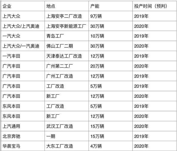 2019-2020年部分外資車(chē)企新能源產(chǎn)能投放數(shù)據(jù)來(lái)源:易車(chē)研究院制表:李卓玲