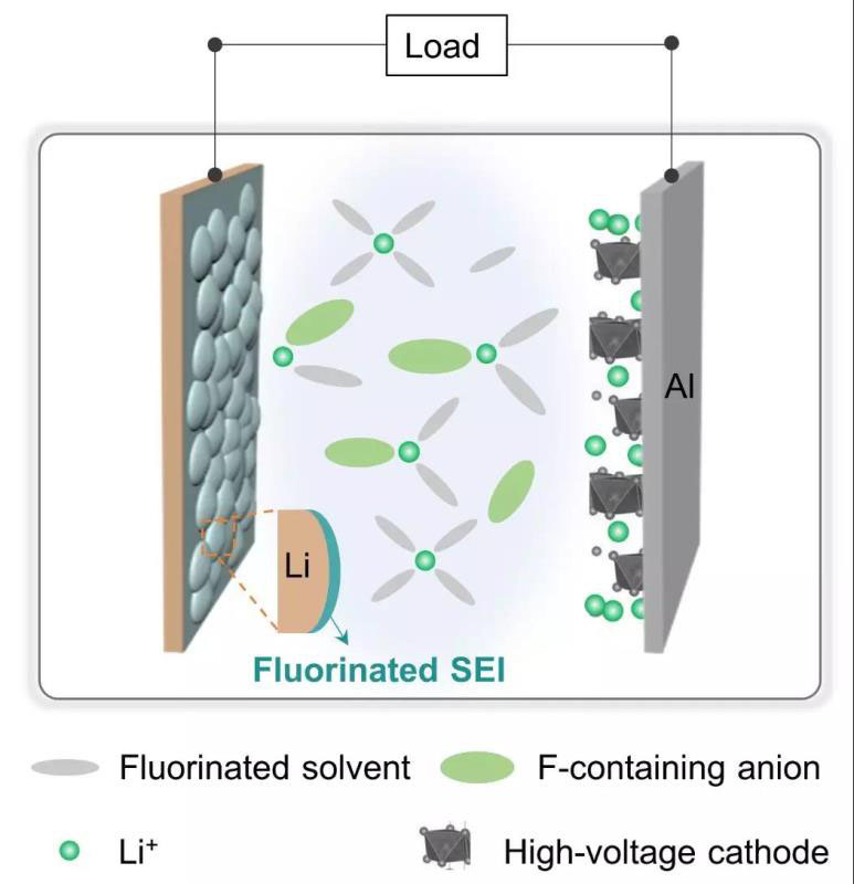 圖 1. 高電壓金屬鋰電池中的氟化SEI。
