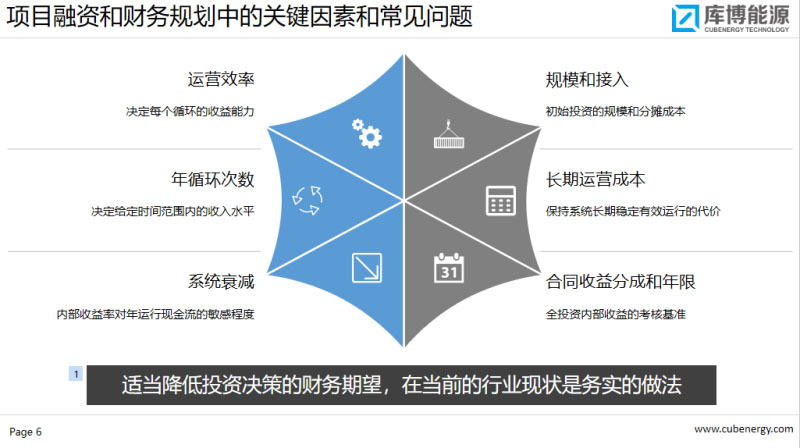 通常在規(guī)劃一個(gè)分布式儲(chǔ)能系統(tǒng)財(cái)務(wù)現(xiàn)金流的時(shí)候,我們面臨的收入來(lái)源比較單一和有限,而限制因素卻相對(duì)較多的。在2018年的時(shí)候,我們看到行業(yè)里面的一些項(xiàng)目,由于成本沒(méi)有下降空間,因此要通過(guò)人為的放寬財(cái)務(wù)限制條件的做法,滿足項(xiàng)目投資門(mén)檻的要求。同時(shí)由于目前的民營(yíng)企業(yè)的融資成本或者民間投資的期望都遠(yuǎn)遠(yuǎn)超過(guò)5年期銀行定期存款利率,造成了部分儲(chǔ)能項(xiàng)目融資上為了迎合9%,10%的全投資內(nèi)部收益率回報(bào),不得不在財(cái)務(wù)數(shù)據(jù)上做包裝,人為的拉高財(cái)務(wù)預(yù)測(cè)水平,短期內(nèi)提升單一項(xiàng)目利潤(rùn)水平,但是放眼未來(lái)將會(huì)失信于市場(chǎng),有損行業(yè)健康發(fā)展。所以從項(xiàng)目融資的角度看,不是我們不想賣(mài)高價(jià),而是真正要以現(xiàn)實(shí)的財(cái)務(wù)數(shù)據(jù)來(lái)做預(yù)測(cè),倒逼我們以成本加合理毛利率出貨,同時(shí)對(duì)于投資機(jī)構(gòu)來(lái)說(shuō),適當(dāng)降低投資決策的財(cái)務(wù)期望,在當(dāng)前的行業(yè)現(xiàn)狀是務(wù)實(shí)的做法。