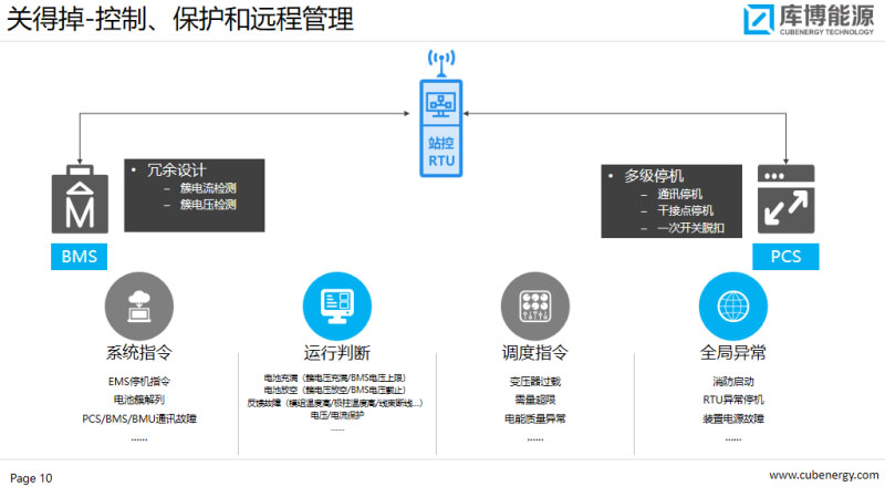 以庫(kù)博的角度來(lái)看,我們更多是站在電力自動(dòng)化的角度來(lái)看分析,BMS相當(dāng)于電池的繼電保護(hù)裝置,只對(duì)電池模組的運(yùn)行進(jìn)行監(jiān)測(cè),控制,保護(hù)和管理。但是具體到外部的控制邏輯,BMS是不會(huì)關(guān)注的;而PCS在充電時(shí)相當(dāng)于電動(dòng)機(jī),在放電時(shí)相當(dāng)于發(fā)電機(jī),我們知道柴發(fā)有自己的控制和保護(hù)邏輯,但是具體什么時(shí)候能夠開(kāi)機(jī),對(duì)于判斷來(lái)說(shuō)只是必要條件,但是并不是充分條件。