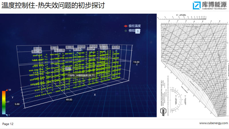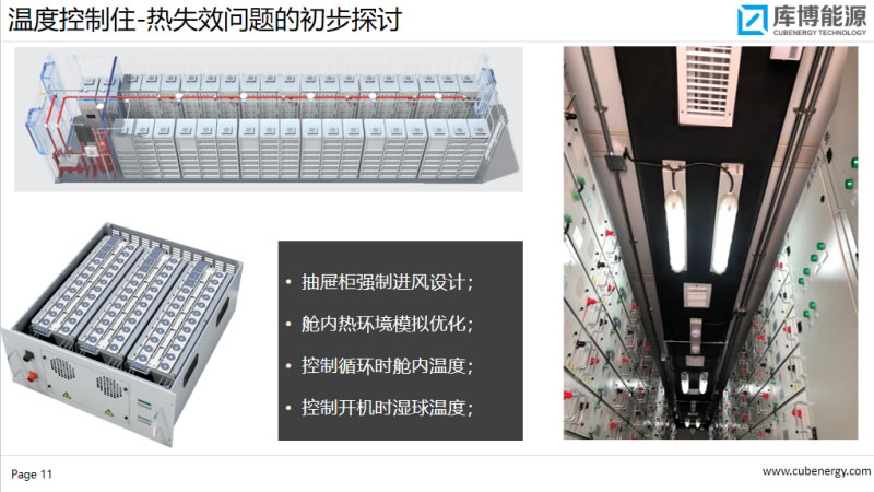 溫度控可控的重要性不言而喻,為了在正常運(yùn)營(yíng)的前提下提升效率一個(gè)0.1個(gè)百分點(diǎn),我們做了大量的試驗(yàn)、模擬和優(yōu)化的工作。如果只是單純把溫度降下來(lái)很簡(jiǎn)單,配置多臺(tái)空調(diào)就足夠,但是我們卻在空調(diào)額定電功率配置、運(yùn)行COP優(yōu)化、依據(jù)模組和簇設(shè)計(jì)條件的風(fēng)道優(yōu)化上面,進(jìn)行了很多腦洞大開(kāi)的試驗(yàn)。
