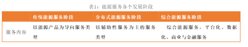 在不同的歷史發(fā)展階段均有不同的業(yè)務(wù)體系??梢苑譃閭鹘y(tǒng)能源服務(wù)、分布式能源服務(wù)和綜合能源服務(wù)三個(gè)階段。