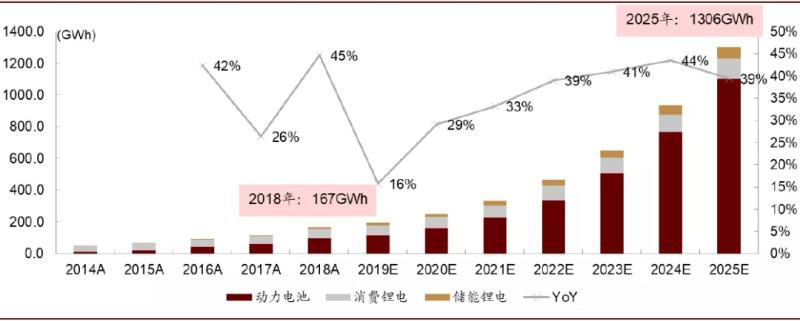 市場展望:空間加速釋放,動力電池領(lǐng)跑增長