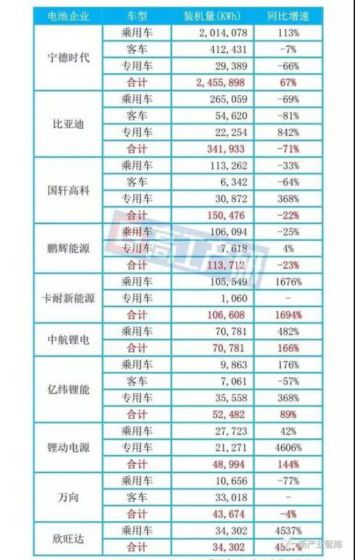 其中,比亞迪、國(guó)軒高科、億緯鋰能、鋰動(dòng)電源的新能源專(zhuān)用車(chē)裝機(jī)電量分別同比增長(zhǎng)842%、368%、368%和4606%。