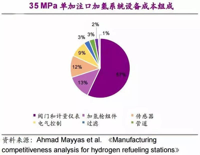 (1)設(shè)備成本中最主要的為閥門和計(jì)量?jī)x表等,占設(shè)備成本的60%左右,用于監(jiān)測(cè)壓力以及氫泄露相關(guān)的傳感器也是加氫系統(tǒng)成本的重要組成部分;